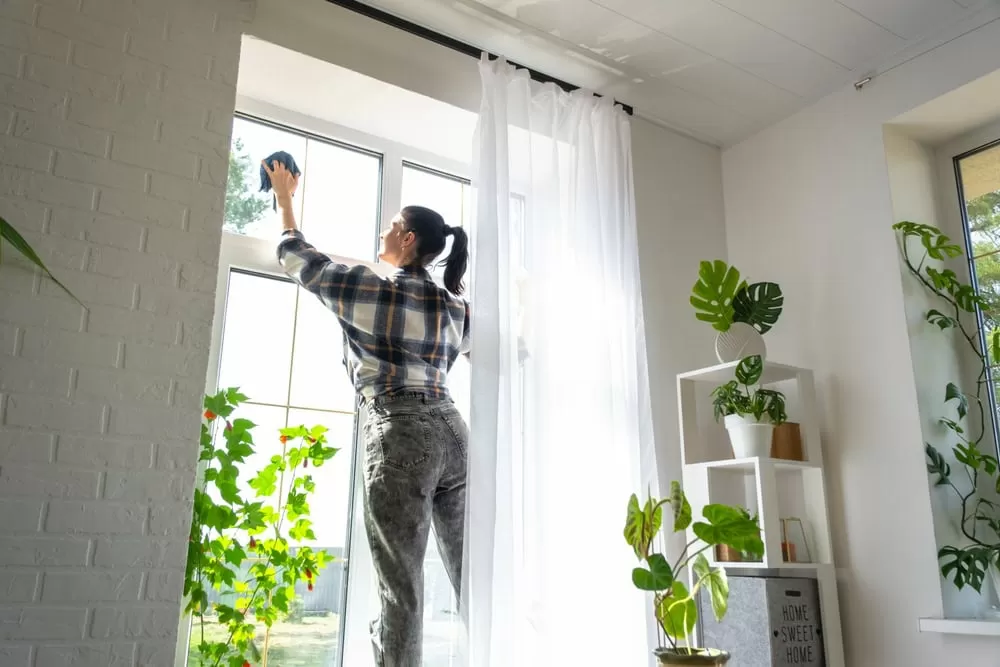 There’s nothing like clean windows to let in the beautiful spring sunlight. Start by dusting the blinds and curtains, and then wipe down the window sills and frames. Next, clean the windows with a mixture of warm water and vinegar or a streak-free glass cleaner. For hard-to-reach windows, use a squeegee for a streak-free finish.
