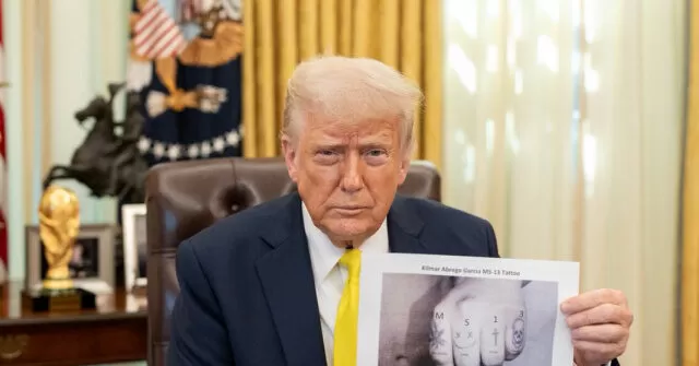 President Donald Trump has once again made headlines with his recent post on social media platform Twitter. The post featured a photo of the knuckle tattoos of an illegal alien, Kilmar Abrego Garcia, who has been accused of being a member of the notorious MS-13 gang, as well as charges of domestic violence and human trafficking. This post has sparked controversy, with Democrats criticizing Trump’s hard stance on immigration and deportation. However, in his defense, Trump stated, “I was elected to take bad people out of the United States. I must be allowed to do my job.”