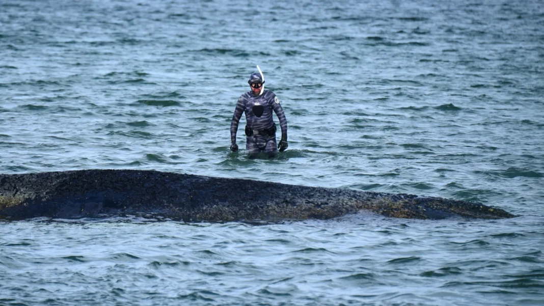 The team of rescuers, who had been monitoring the whale’s condition, were relieved to see it swim freely once again. However, the danger for the whale was far from over. The experts warned that the whale could still face potential threats, such as getting entangled in fishing nets or being hit by a ship.
